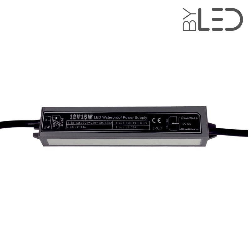 Les alimentations 12V sont étanches (IP67) et munies de 15cm de câble.