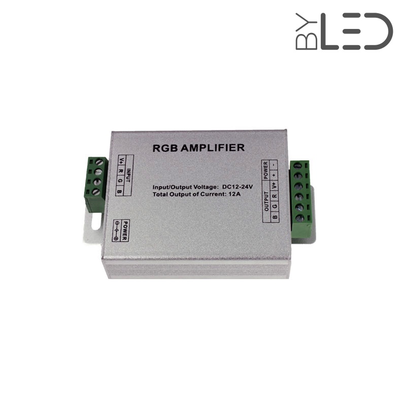 Il récupère en entrée le signal d'un ruban RGB ou du contrôleur et le restitue avec une puissance permettant de prolonger le ruban tout en conservant l'effet initial.