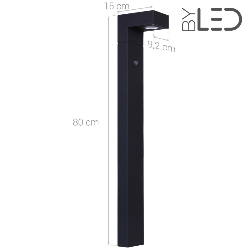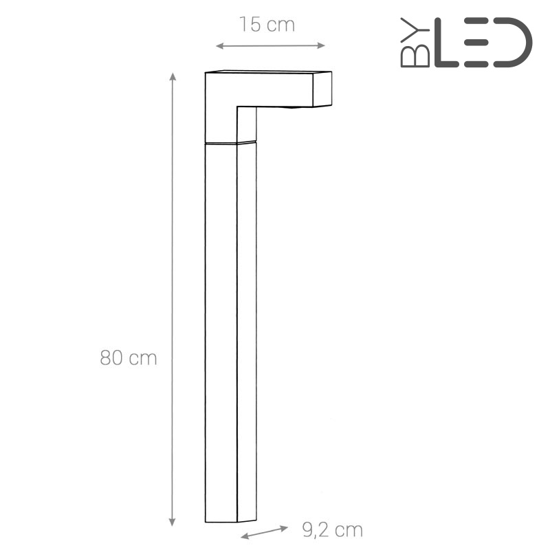 Hauteur : 80 cm - Indice de protection IP54 - Angle de diffusion 120° - 230 V direct via bornier étanche.