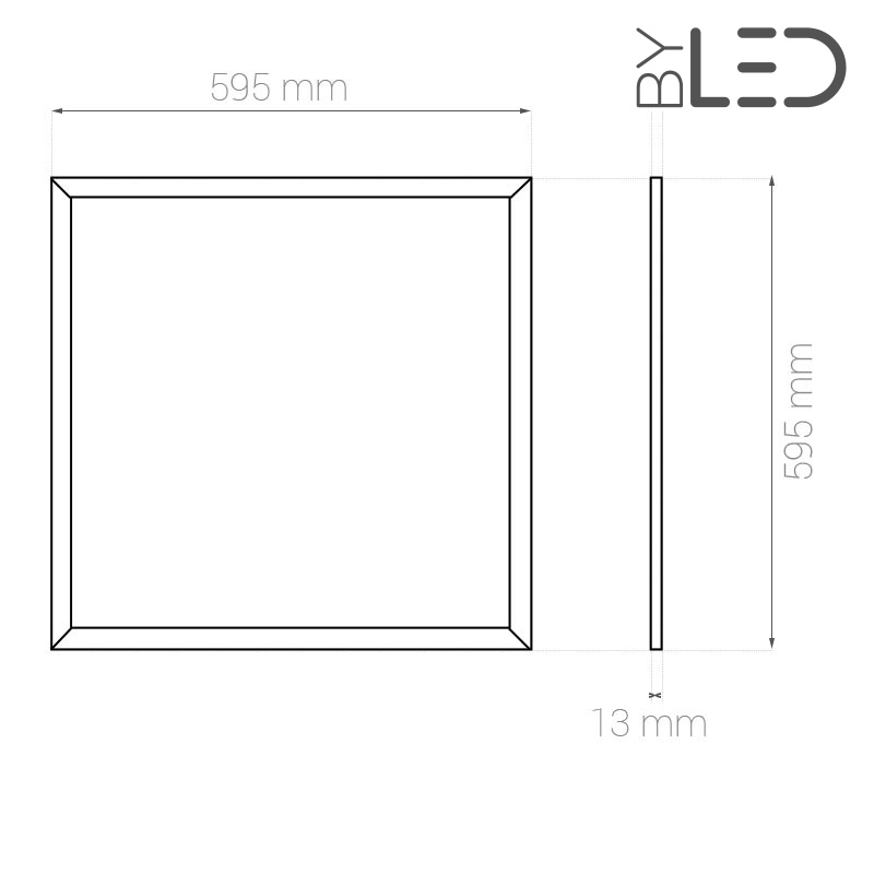 Dimensions : 595 x 595 x 13 mm - IP 44 - Diffusion : 130° - Alimentation 230V.