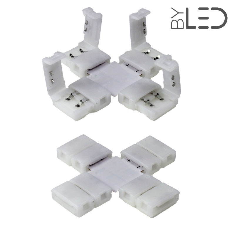 Ce connecteur permet de faire une jonction en forme de "Croix" entre 2, 3 ou 4 sections de rubans LED monochromes.