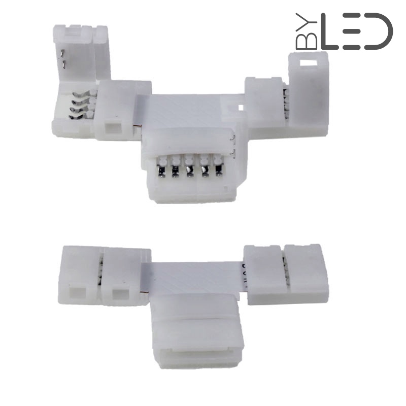 Ce connecteur permet de faire une dérivation en "T" entre 2 ou 3 rubans LED RGB+Blanc.