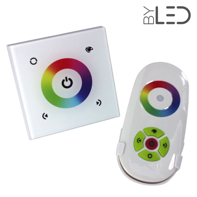 Ce kit télécommande RGB murale + télécommande radio est composé d'un bloc mural filaire et d'une télécommande sans fil, il vous permet de créer des ambiances lumineuses en mélangeant les 3 couleurs (Rouge, Vert et Bleu) de vos rubans LED RGB.