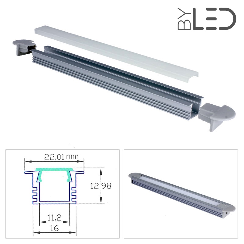 Sa faible profondeur d’encastrement permet d'atténuer l'effet de « point » en lissant la lumière, ce profilé peut s’encastrer dans n’importe quel support (bois, BA13, etc.). Installation intérieure uniquement.