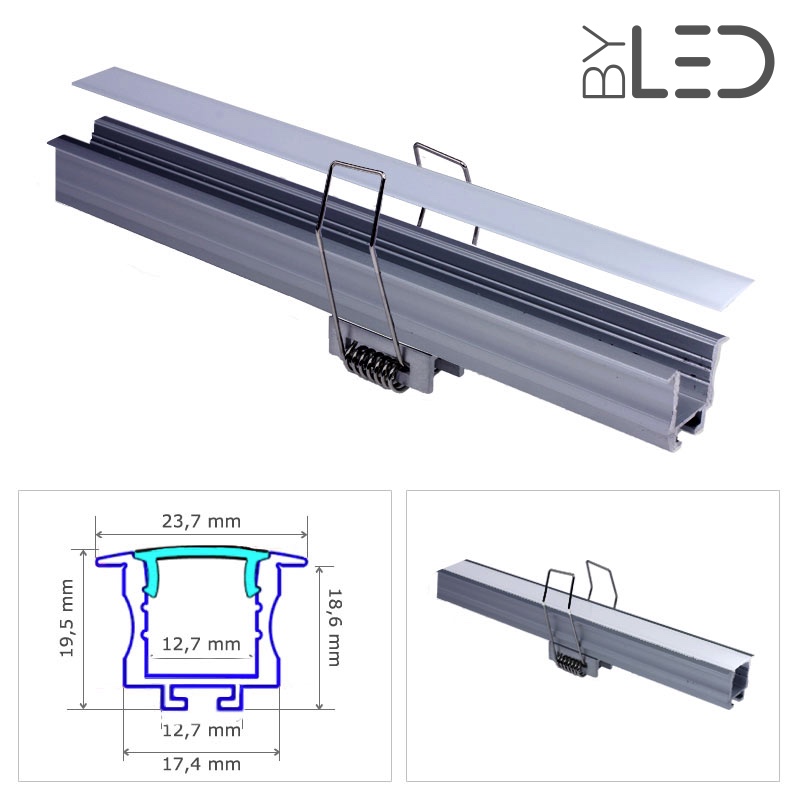 Ce profilé aluminium pour ruban LED est conçu pour s'encastrer dans les matériaux creux comme le Placo-plâtre ou le bois afin de réaliser des chemins lumineux décoratifs et fonctionnels dans les plafonds, cloisons et doublages.