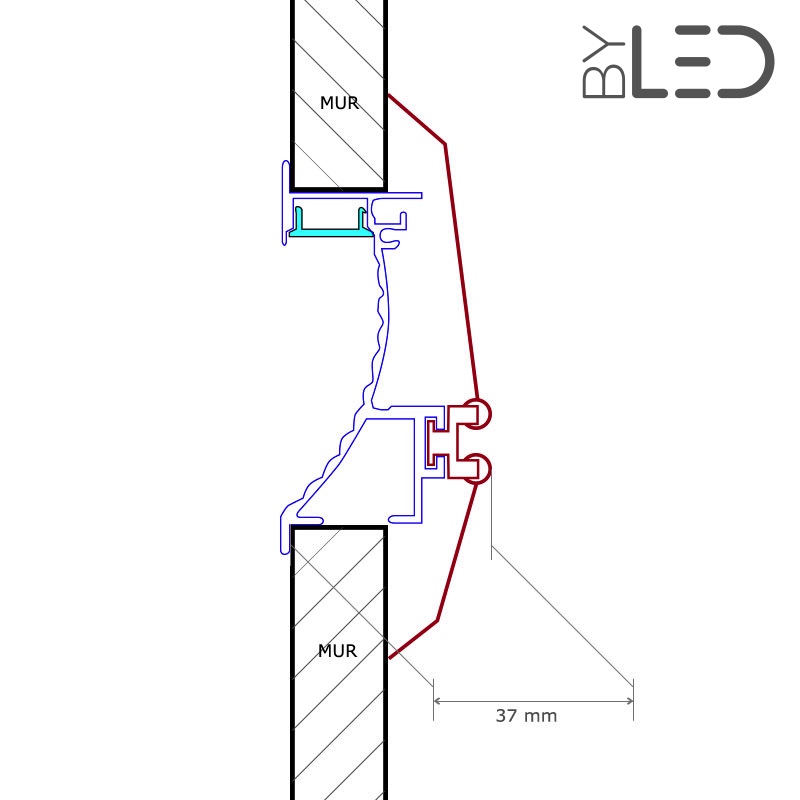 Ce profilé encastrable est à installer dans un mur creux et se fixe tout comme un spot encastrable avec les ressorts de fixation qui viennent s’appuyer derrière le mur.