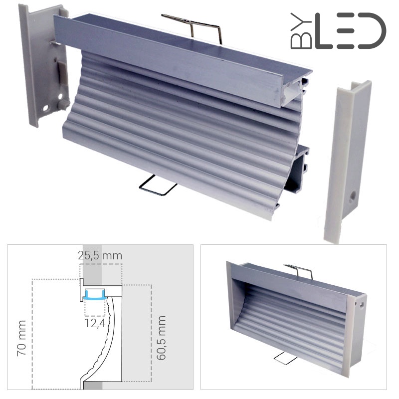Profilé encastré mural pour ruban LED. En aluminium.