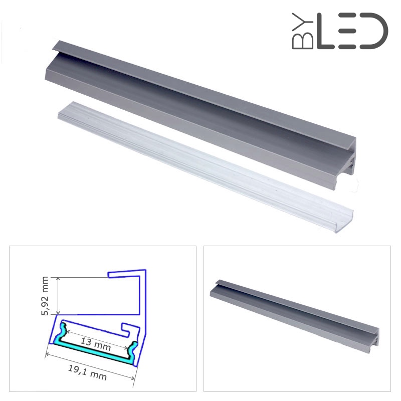 19,1 mm de largeur – Profilé pour ruban LED de 13 mm de large maximum.