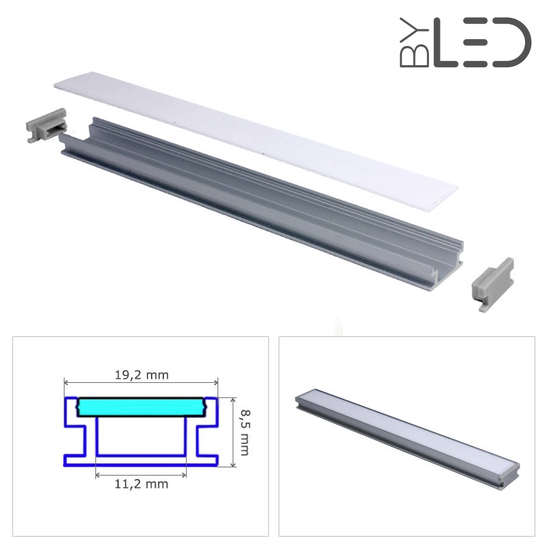 Profilé pour ruban LED encastrable pour sol et mur. En aluminium.