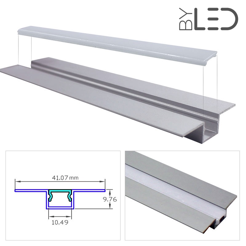 Ce profilé aluminium pour ruban LED se caractérise par sa largeur importante qui permet de masquer d'éventuelles irrégularités (fissures, joints de dilatation, ...) du support et encastrer dans les menuiseries et maçonnerie un éclairage LED.