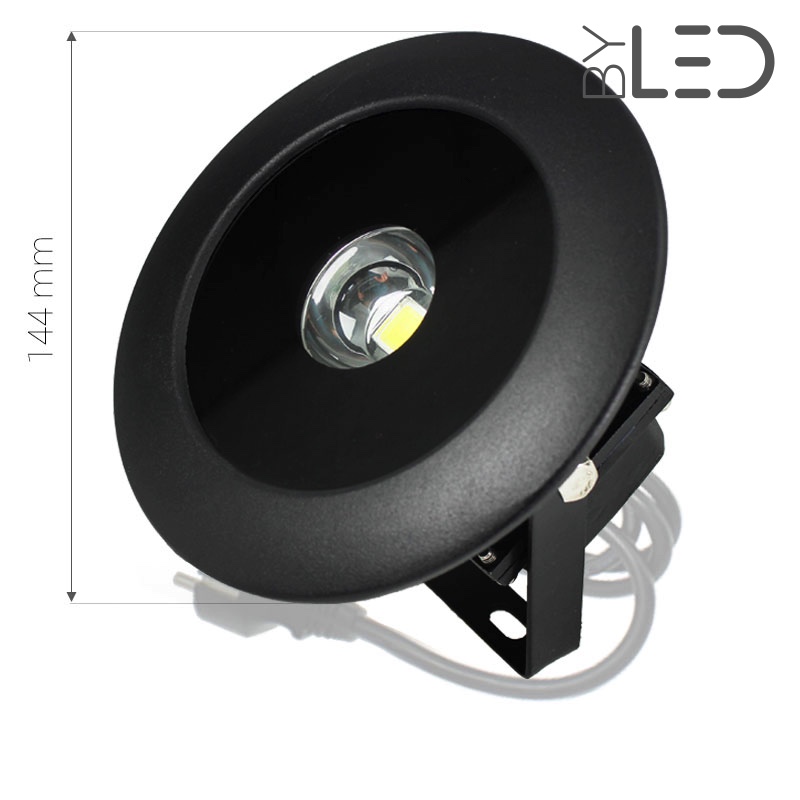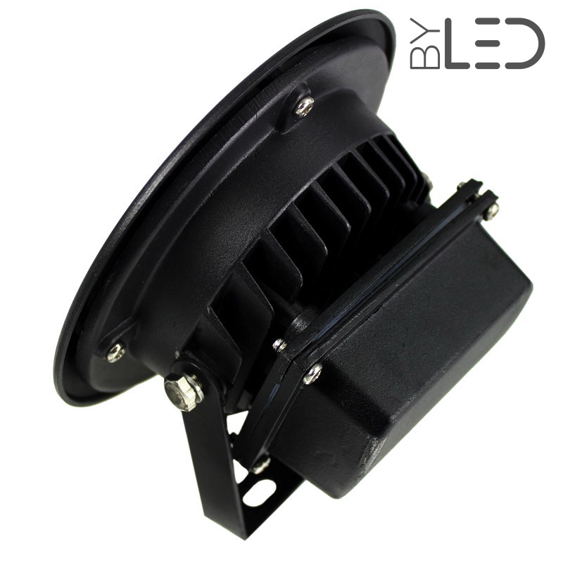 Projecteur LED étanche 10W. Rond, en aluminium laqué noir.
