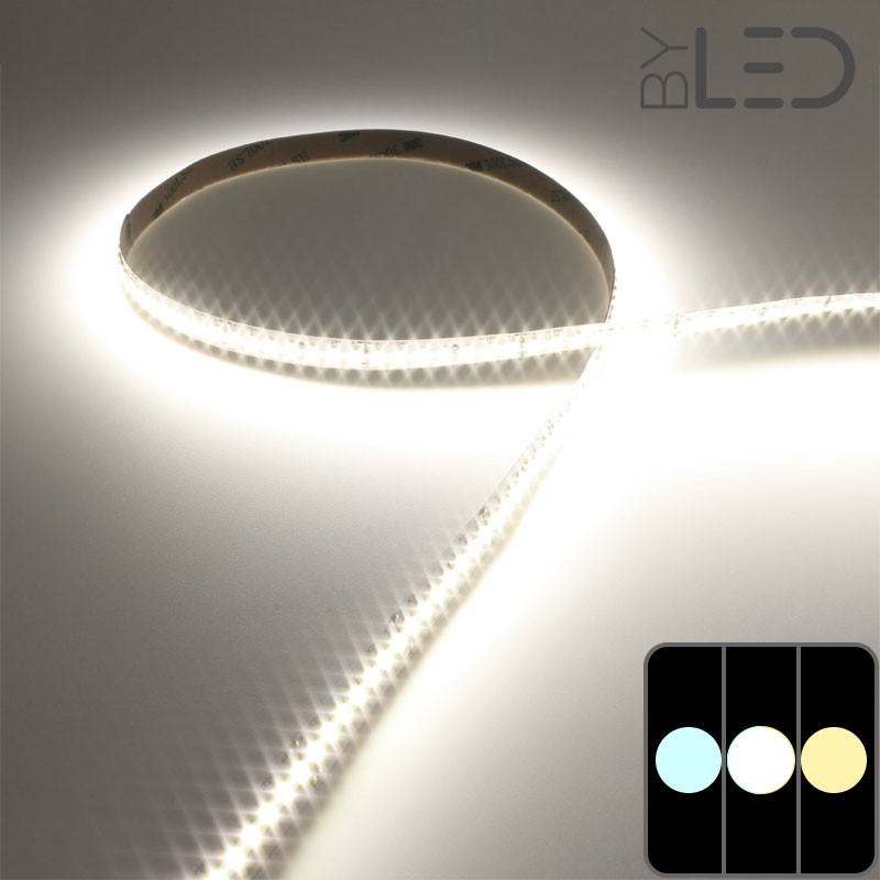 Avec ces 168 LED par mètre, la lumière est diffusée de manière linéaire, grâce au faible espace existant entre les LED. Pour lisser encore plus la diffusion de la lumière et obtenir un effet néon, nous vous conseillons d'intégrer votre ruban dans un profilé pour ruban LED au diffuseur givré.