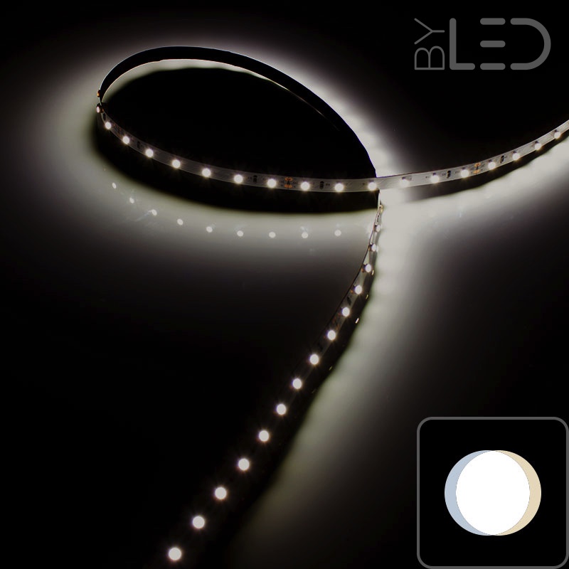 24 volts (alimentation non fournie) - LED SMD 3528 – Étanches aux projections d'eau et poussières IP65 – 4,8 watts/m avec 60 LED/m