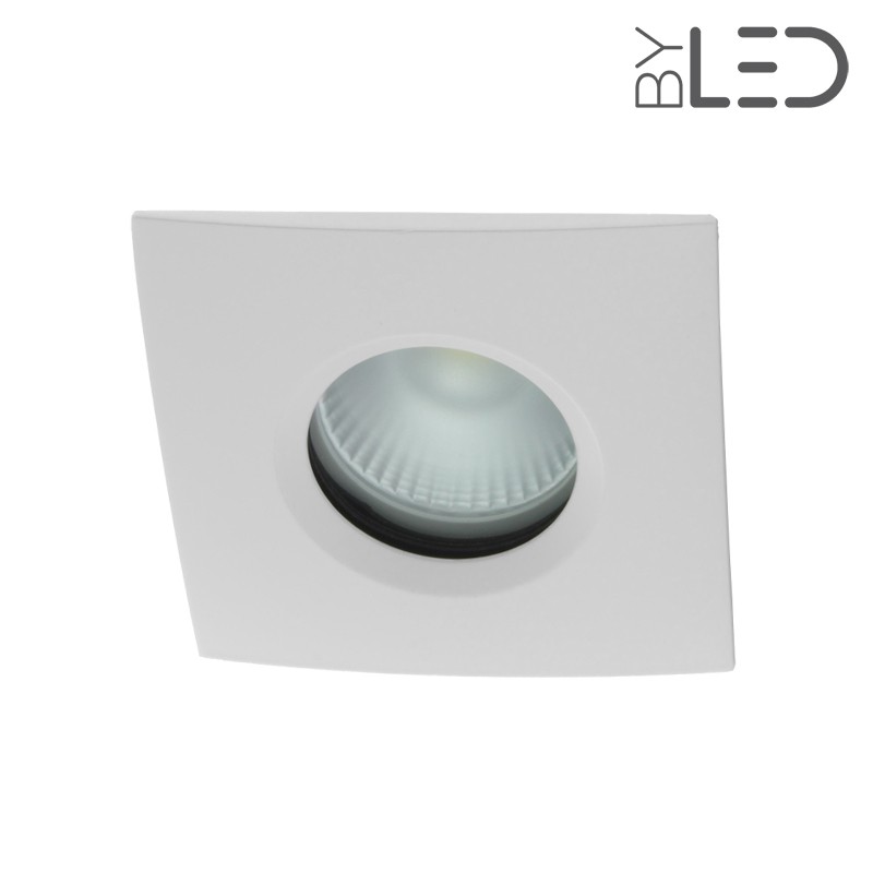 Spot encastrable fixe à collerette carrée, chanfrein, Blanc mat. Label BBC, conforme RT2012.