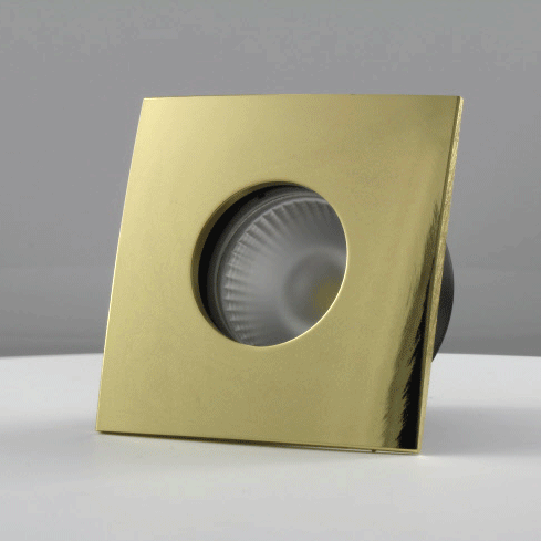 Spot encastrable fixe à collerette carrée, convex, Or brillant. Label BBC, conforme RT2012.