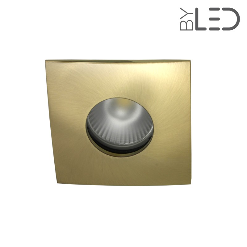 Spot encastrable fixe à collerette carrée, convex, Or satiné. Label BBC, conforme RT2012.