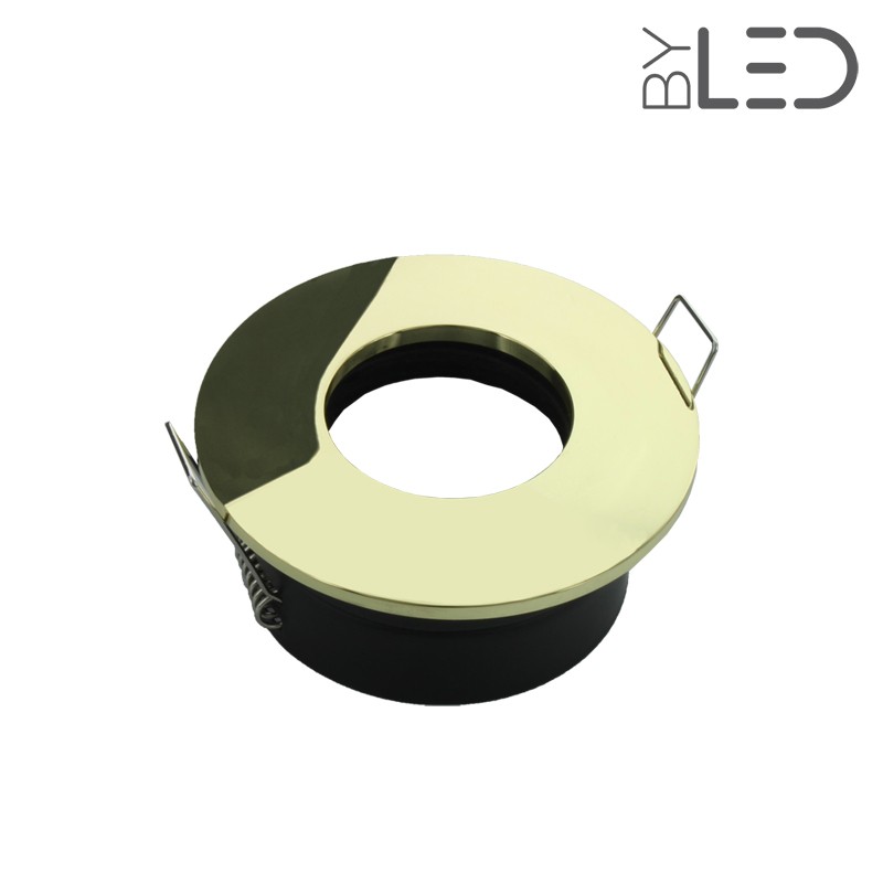 Spot encastrable fixe à collerette ronde, convex, Or brillant. Label BBC, conforme RT2012.