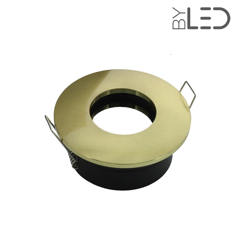 Spot encastrable fixe à collerette ronde, convex, Or satiné. Label BBC, conforme RT2012.