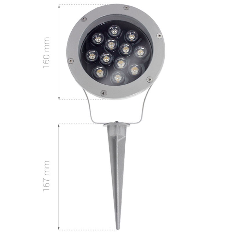 Spot LED extérieur pour jardin, piquet - 12 WATTS. Idéal pour une utilisation extérieure - Étanche IP68 – Rayon de diffusion de 30° - Alimentation : 230V direct (vendu avec 1,5 m de câble).