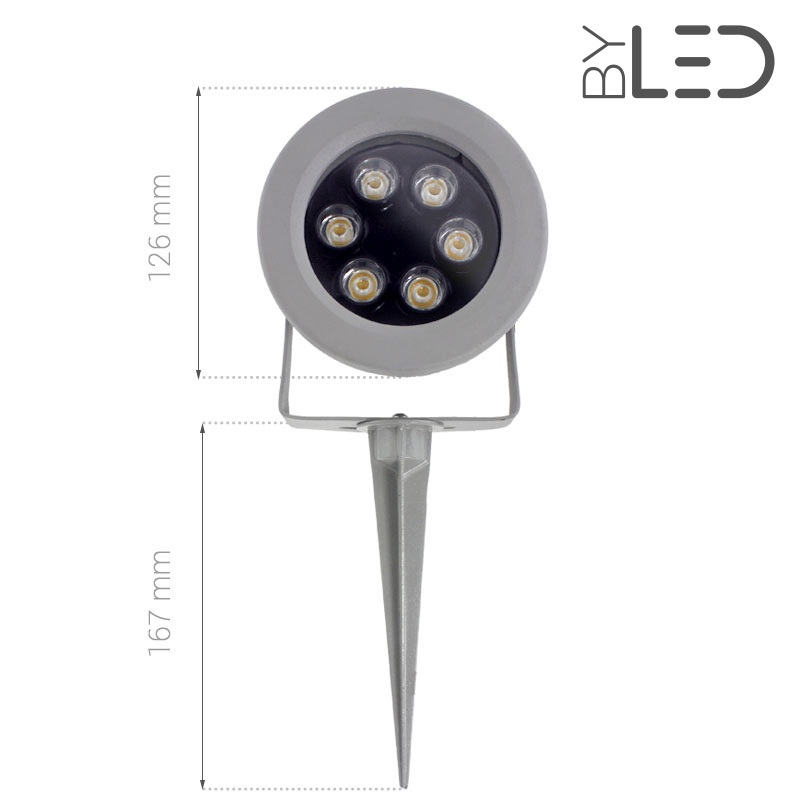 Spot LED extérieur sur piquet 6W. En aluminium, laqué gris.