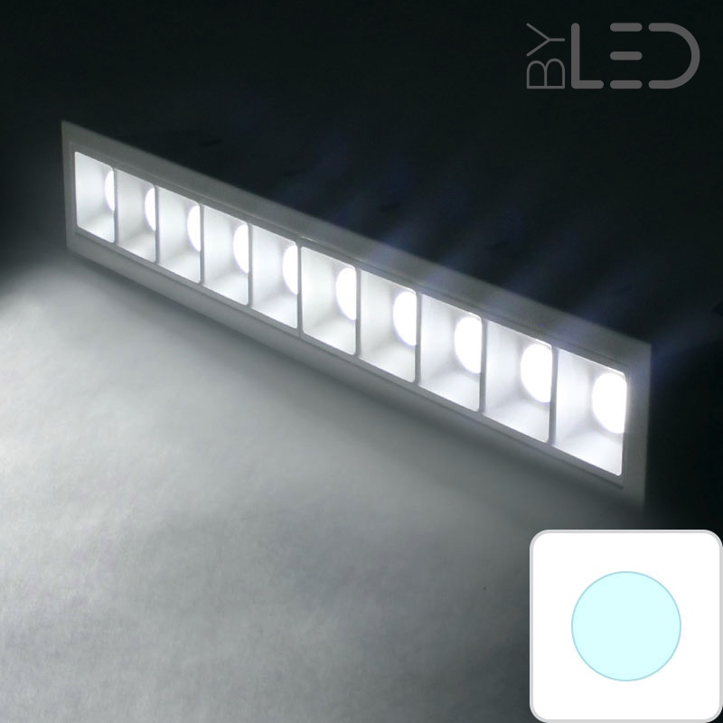 Barre lumineuse LED 10 x 2 watts. Cache blanc brillant.