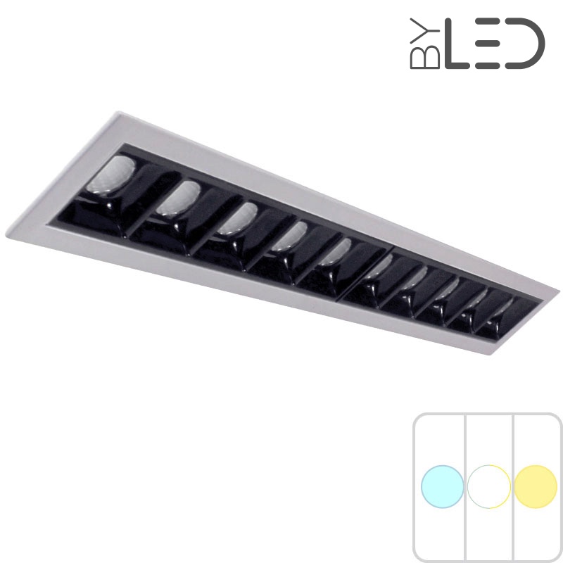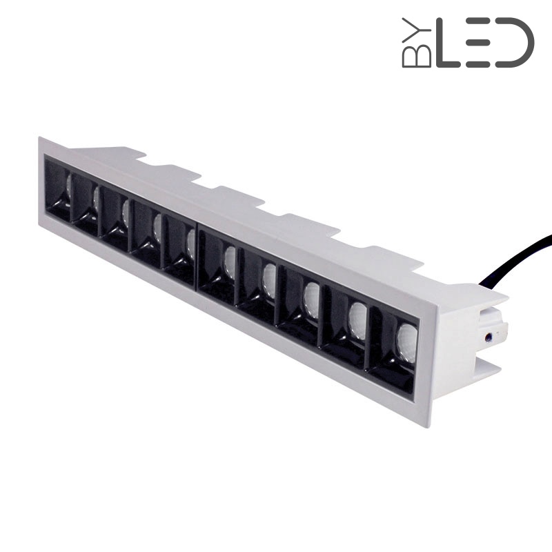 Spot LED encastré linéaire 20 watts. Cache de finition laqué noir.