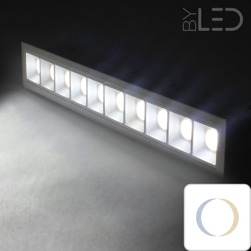 Ce que l’on apprécie tout particulièrement sur ce modèle est le soin accordé au design. Le cache de finition en blanc brillant ajoutera une touche moderne et lumineuse à votre faux plafond. Ce spot est composé de 10 LED côte à côte, de 2 watts chaque, formant ainsi une barre lumineuse esthétique.