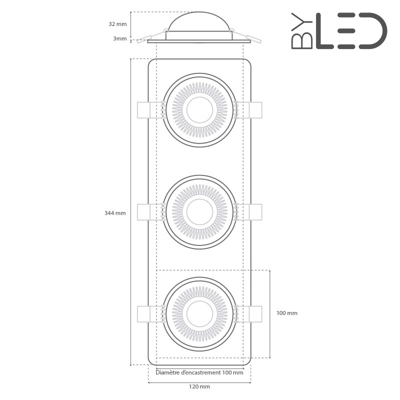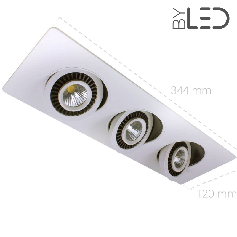 Support encastrable multi-spots LED 21 watts (3 x 7W). Orientabilité élevée : 90°