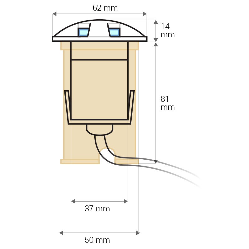 Diamètre : 62mm - Étanche IP67 - Diffuseur latéral 3 voies sur 180° - 12V DC.