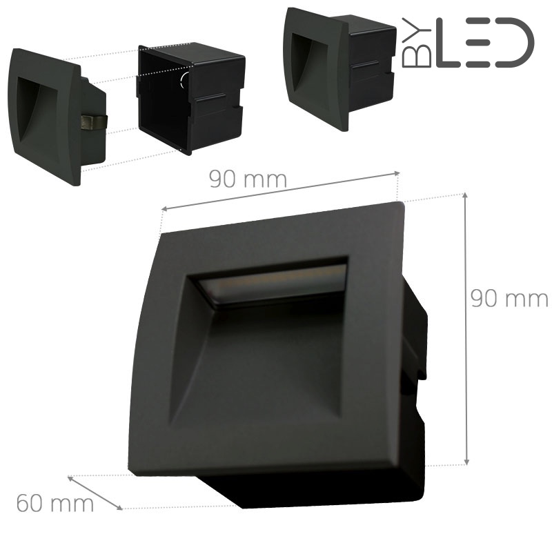 Simple d'installation, votre encastré mural LED est fourni avec sa boite d'encastrement à maçonner. Le branchement électrique se fait en 230 Volts direct par bornier à vis.