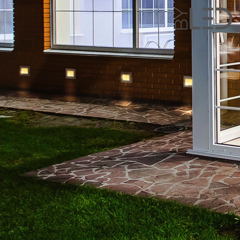 Cet encastré mural LED s'encastre dans les murs (façades, murets, piliers, etc.) et diffuse une lumière douce. Idéal pour mettre en valeur le pourtour des maisons, terrasses, allées, piliers et abords de piscine (distance > 2 mètres du bassin).