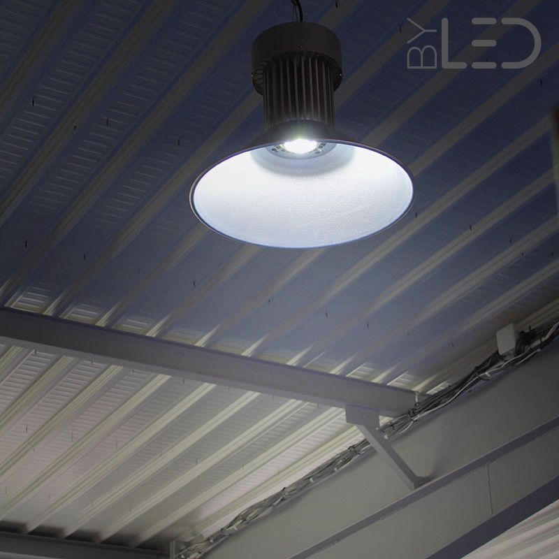 Une suspension industrielle puissante à technologie LED pour bâtiments de grande hauteur (High-bay) conçue pour remplacer les armatures industrielle à iodure: