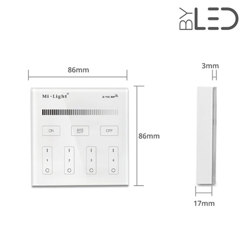Dimmer : variation de l'intensité lumineuse - Gestion de 4 zones - 86mm x 86mm