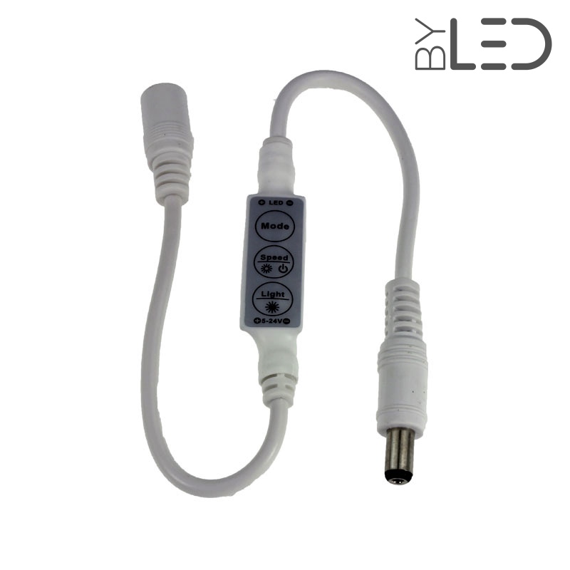 Cette mini télécommande filaire permet de créer des ambiances lumineuses en faisant varier l'intensité lumineuse et en proposant des effets d'enchainements.