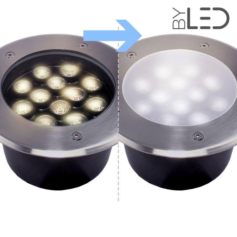 Cette vitre "dépolie" permet de modifier l'émission de lumière de votre spot encastré de sol Terra-12 afin de rendre son flux lumineux plus diffus.