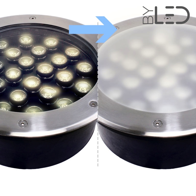 Cette vitre "dépolie" permet de modifier l'émission de lumière de votre spot encastré de sol Terra-24 afin de rendre son flux lumineux plus diffus.